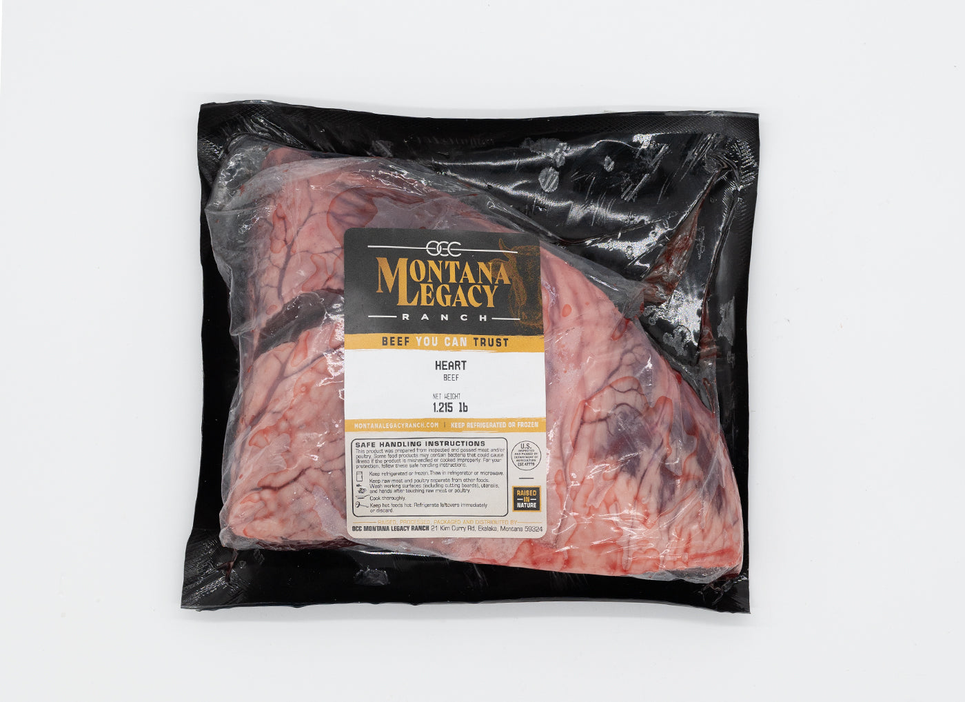 El corazón, el más versátil de los órganos de res, se puede cocinar solo o incluirse en mezclas de carne molida. Este producto está certificado como orgánico por el USDA.