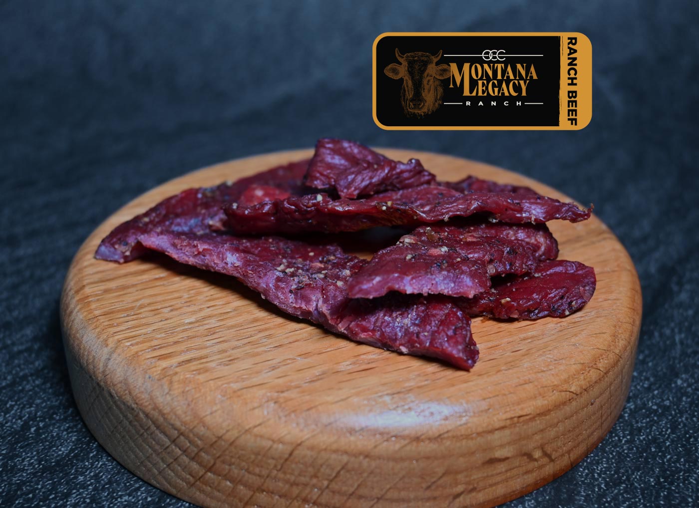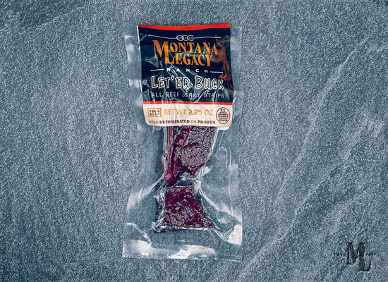 Las tiras de carne seca Montana Legacy Ranch son solo eso: tiras de carne seca 100%. Nuestras tiras se envían frescas (congeladas o refrigeradas), ¡refrigerios ricos en proteínas perfectos para llevar! ¿Nuestra diferencia? No utilizamos ningún conservante... todo se ahuma fresco y se envía fresco a usted.