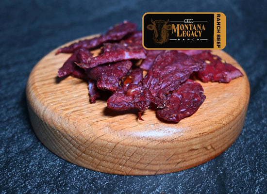 Las tiras de carne seca Montana Legacy Ranch son solo eso: tiras de carne seca 100%. Nuestras tiras se envían frescas (congeladas o refrigeradas), ¡refrigerios ricos en proteínas perfectos para llevar! ¿Nuestra diferencia? No utilizamos ningún conservante... todo se ahuma fresco y se envía fresco a usted.