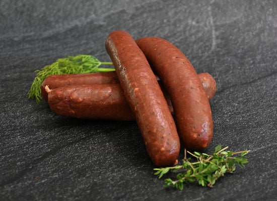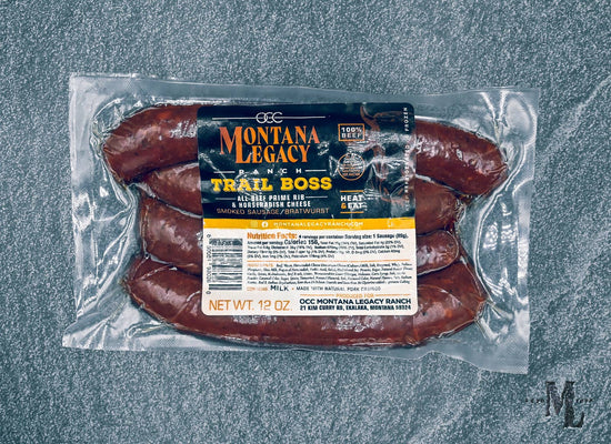 Todas nuestras salchichas/bratwurst Montana Legacy Ranch están hechas con CERO conservantes. Los ahumamos a la antigua usanza en tripa natural de oveja. Te encantará el sabor y el sabor.